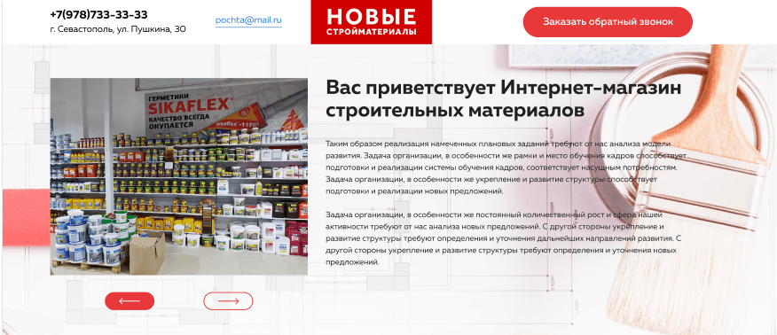 Разработали информационный сайт для магазина строительных материалов “СевНС”. Разработан на авторской CMS системе.