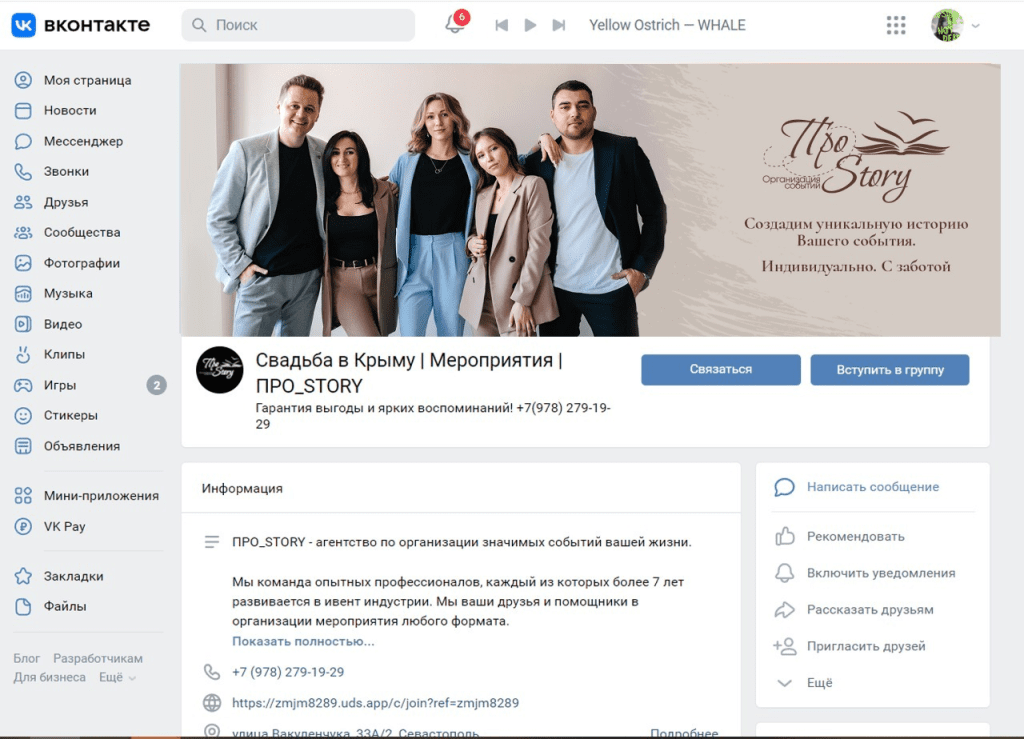 Реализовано полное оформление сообщества для агентства по организации значимых событий “ПРО_STORY”, Перед работой над таргетированной рекламой