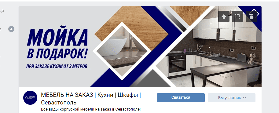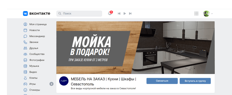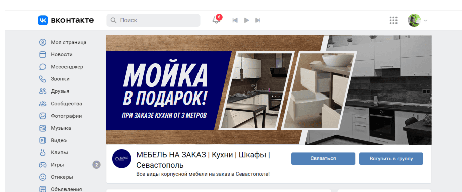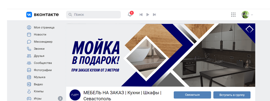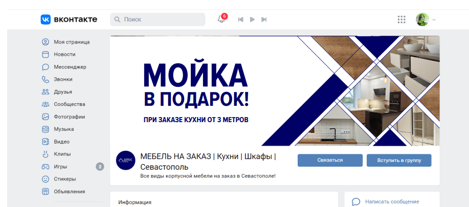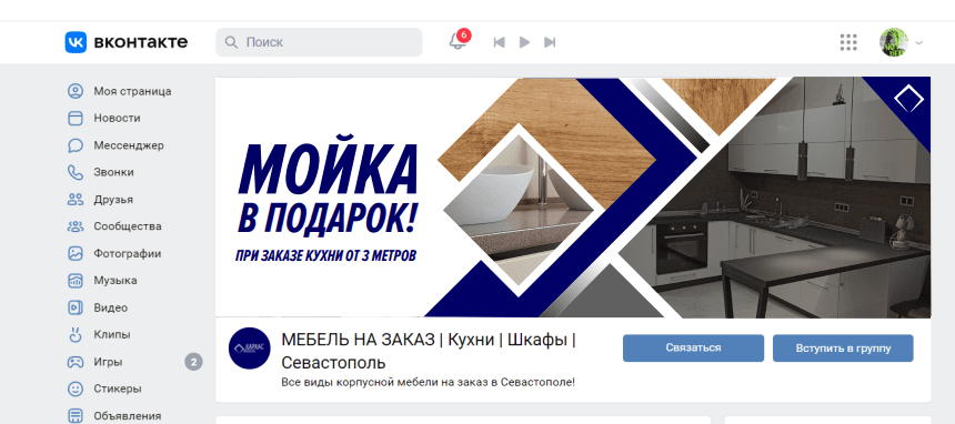 Задача: оформить группу Вконтакте “Под ключ” для студии корпусной мебели в Краснодаре. Также, мы посодействовали правильно определить уникальное торговое предложение, дали рекомендации по постингу и по контент наполнению сообщества.