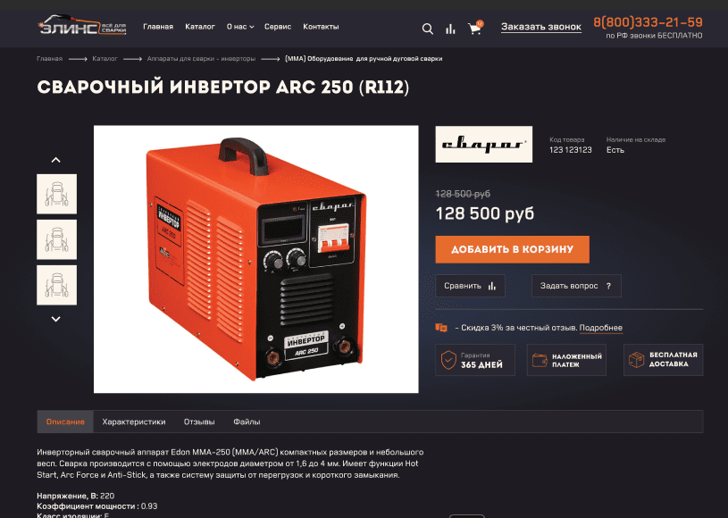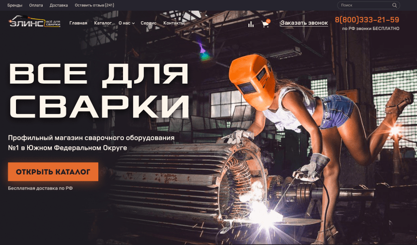 После разработки логотипа для магазина сварочного оборудования “Элинс”, мы приступили к преобразованию дизайна сайта. К сожалению, программной части и верстке были привлечены сторонние исполнители, что повлияло на конечный вид ресурса.
