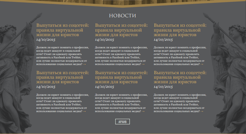 К сожалению, на данный момент, сайта уже не существует и он утерян. Два новых проекта были разработаны: новый сайт для юридического агентства и для преподавательства по обществознанию.