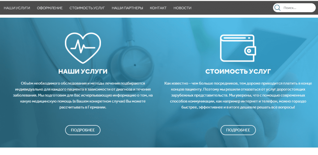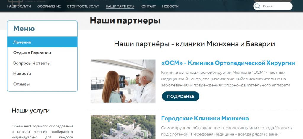 Страница услуг: