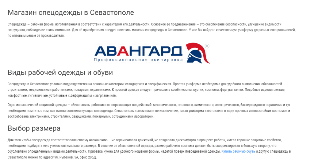 Для будущих работ по сео оптимизации, нам потребовалось разработать простой и недорогой сайт-прокладку. Основные требования – быстрота и бюджетность реализовались: : specodezhda-sevastopol.ru Собрали за неделю и сразу начались работы по сео, которые уже принесли достойные результаты!