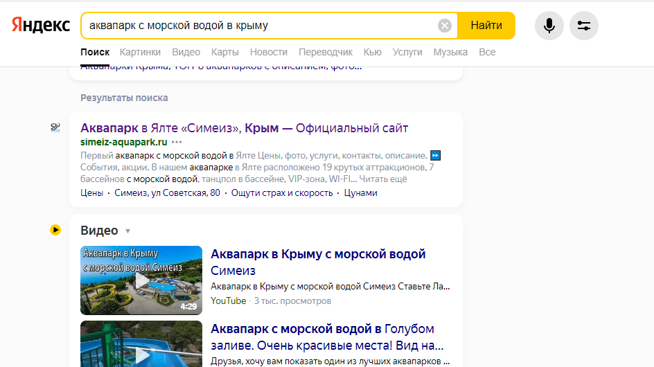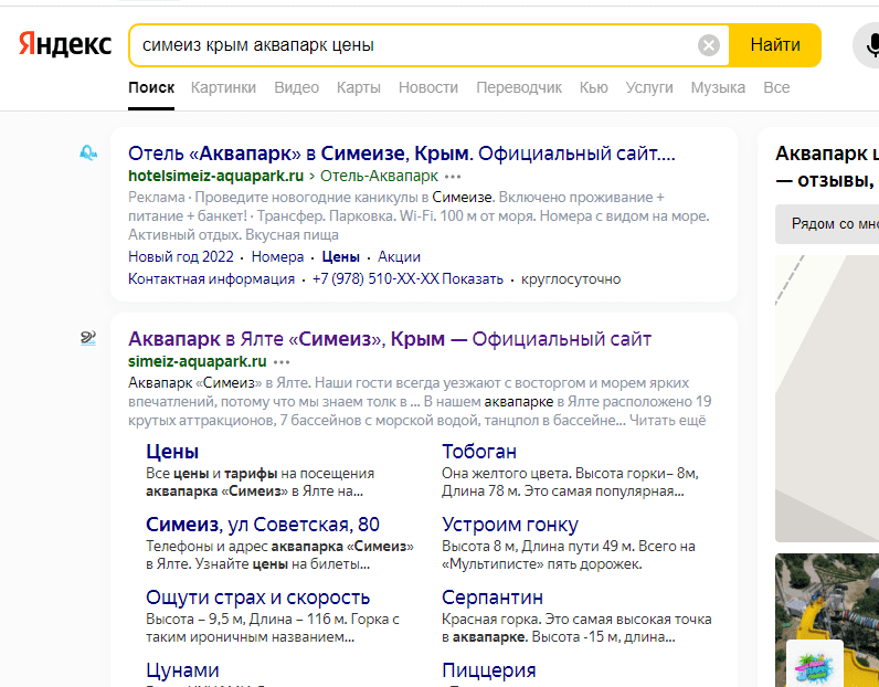 После редизайна сайта – клиент попросил починить seo продвижение сайта. Целый год сайт поднимался в поисковых системах и никак не мог обогнать конкурентов. После анализа стало ясно, что продвигается вообще не тот запрос. Клиент хотел продвигать “аквапарк Крым” и “аквапарк Ялта”, вместо этого вся работа велась по более низкочастотному запросу: “аквапарк Симеиз”