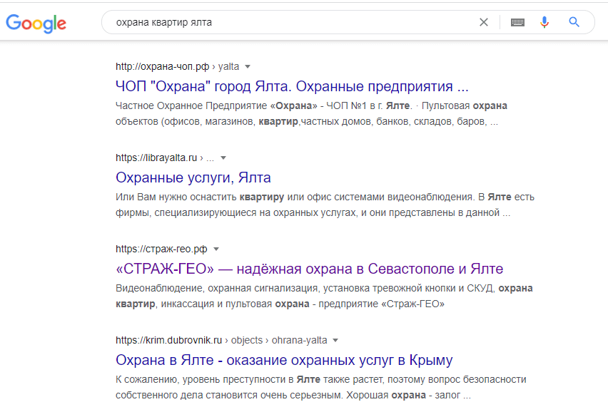 Мы периодами работаем с сайтом предлагающим услуги охранной организации и видеонаблюдения в Краснодаре и Ялте. Результаты очень радуют клиентов: