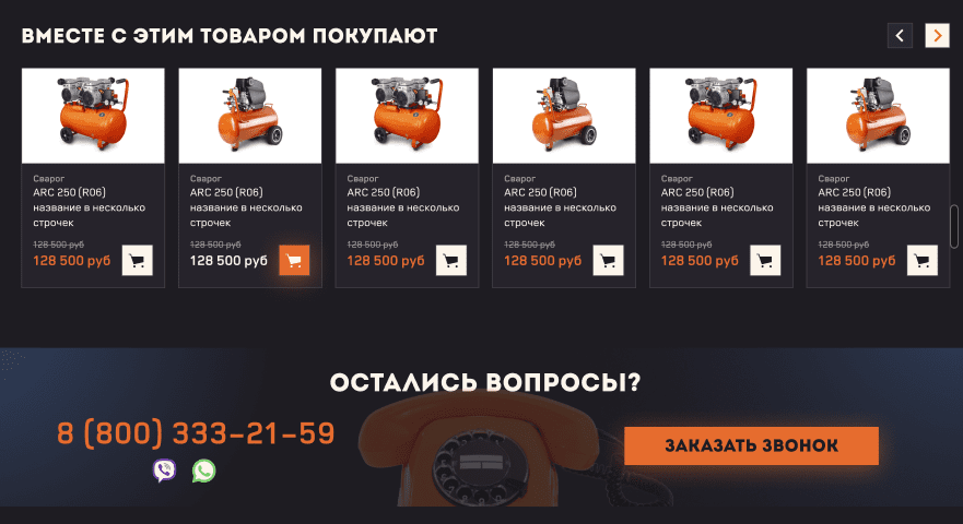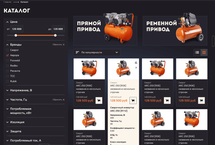 Вслед за разработкой логотипа для магазина сварочного оборудования “Элинс”, поступила задача разработать интернет магазин “Под ключ” для продажи компрессоров. CMS была выбрана авторская.