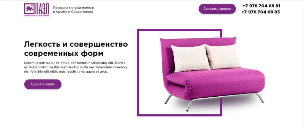 Создание одностраничного, информационного сайта для продажи мягкой мебели. На данный момент сохранен только дизайн. Сайт был на CMS Joomla, дополнительно был реализован конструктор диванов.