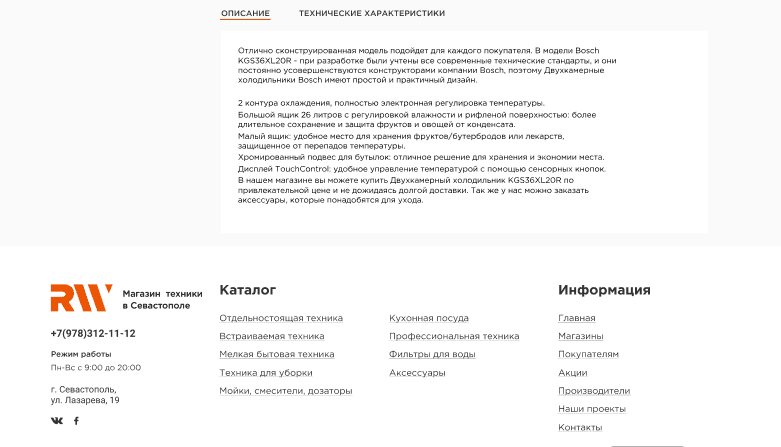 Страница товара: