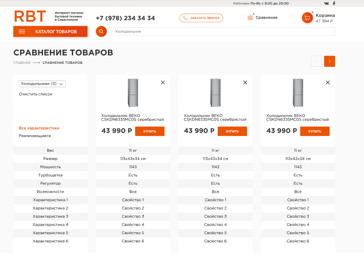 Сравнение товаров: